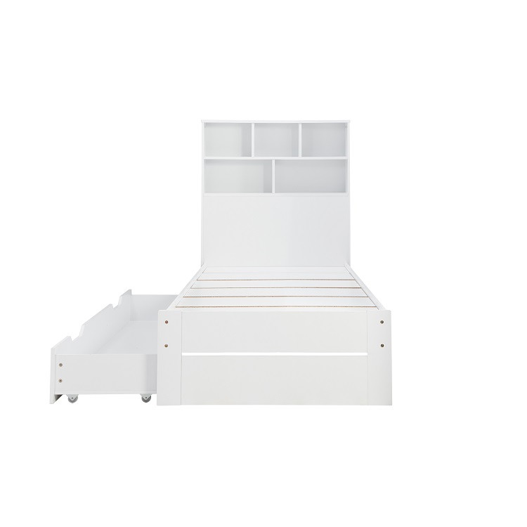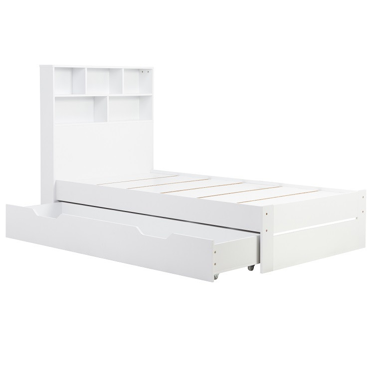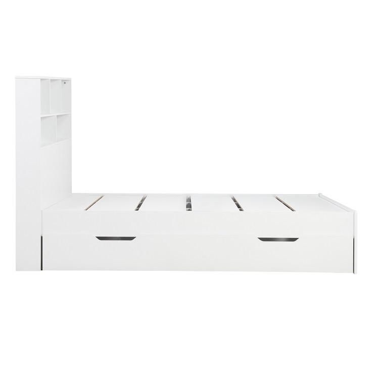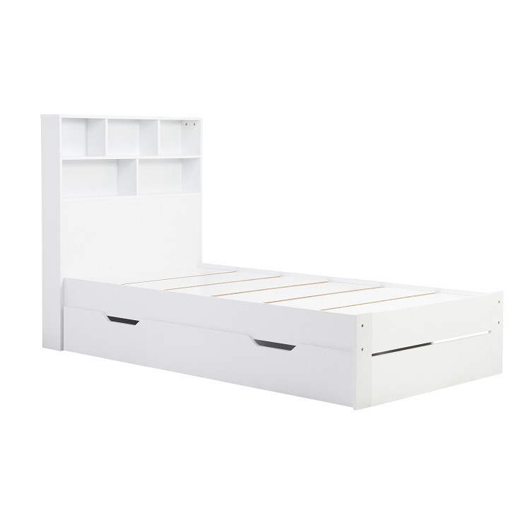 Alfie Single Storage Bed in White — The Alfie storage bed is a versatile bed like no other. The Alfie comes with a headboard storage solution ideal for books, blankets and other trinkets. The Alfie storage bed also has a useful pull out drawer that can be used either side of the bed. The max weight load for the drawers is 75kg. Please note: Birlea beds are only suitable for a UK standard size mattress.