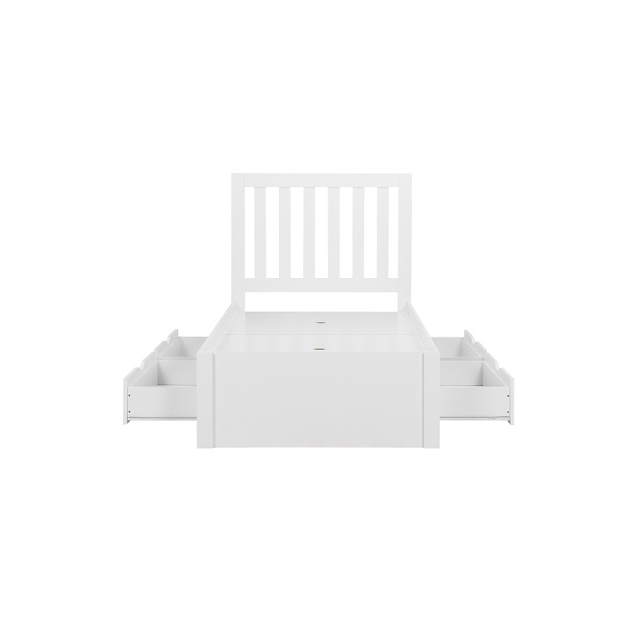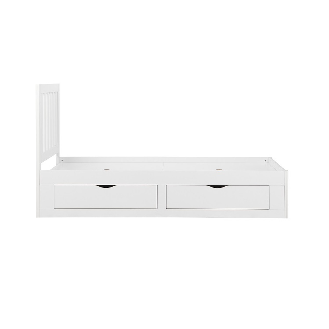 Appleby Single Bed in White — Add easy storage to even the most compact of rooms with this beautiful Appleby bed. Featuring 4 large drawers this bed is the ideal storage solution. The maximum mattress height to be used is 190 mm. The maximum load baring is 100kg. Please note: Birlea beds are only suitable for a UK standard size mattress.