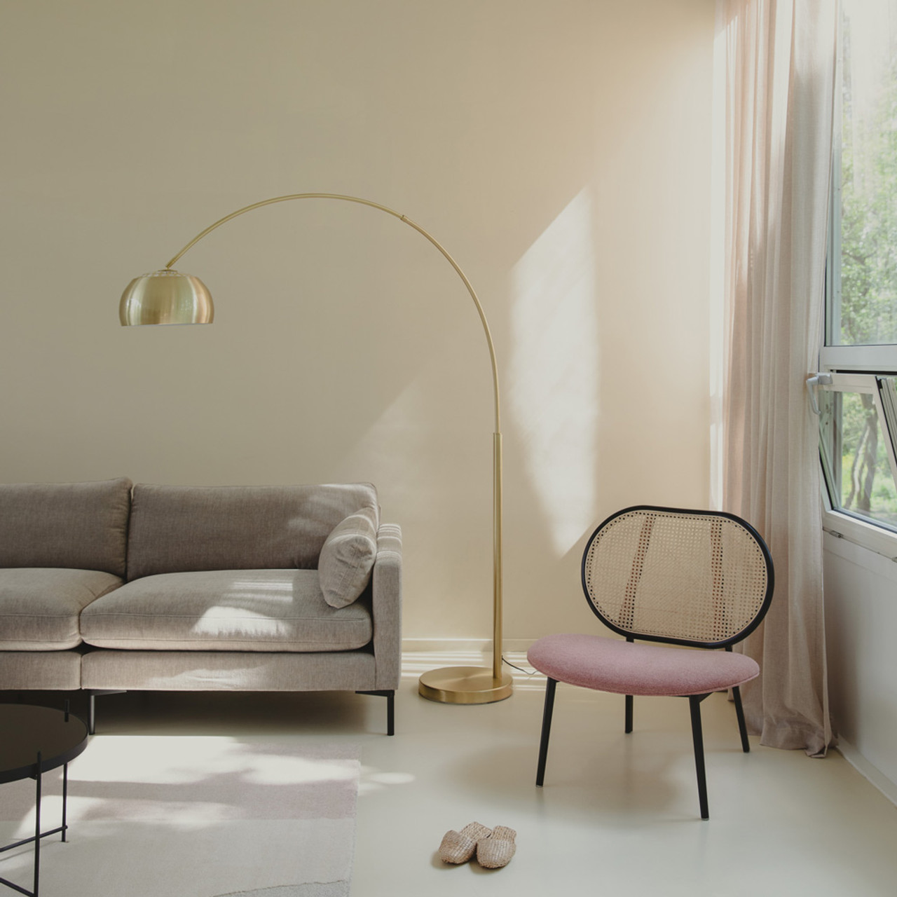 Vintage 60’s style. Zuiver Gold Adjustable Arc Floor Lamp – brings elegant, diffused light to your space.
