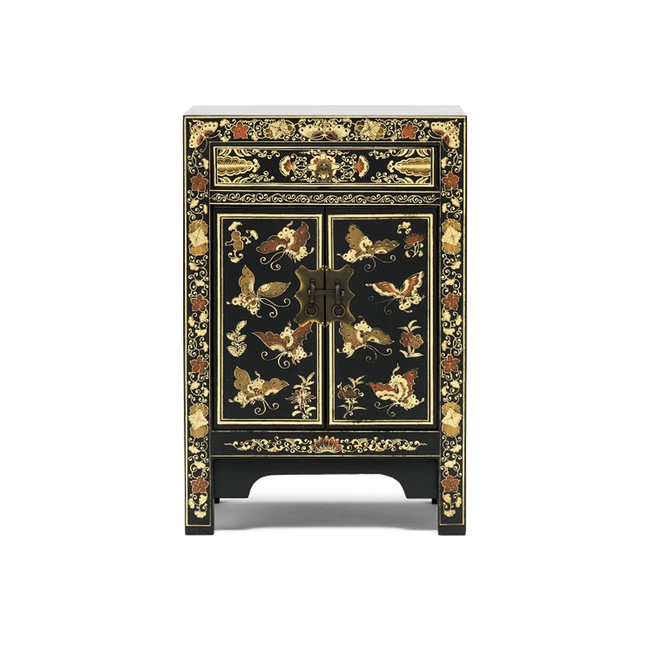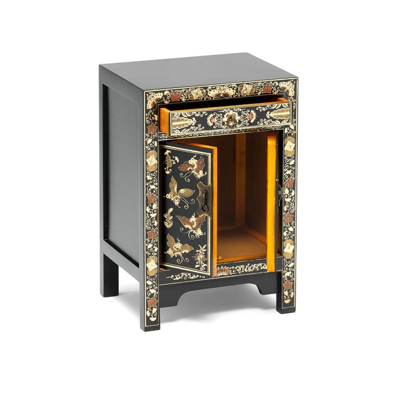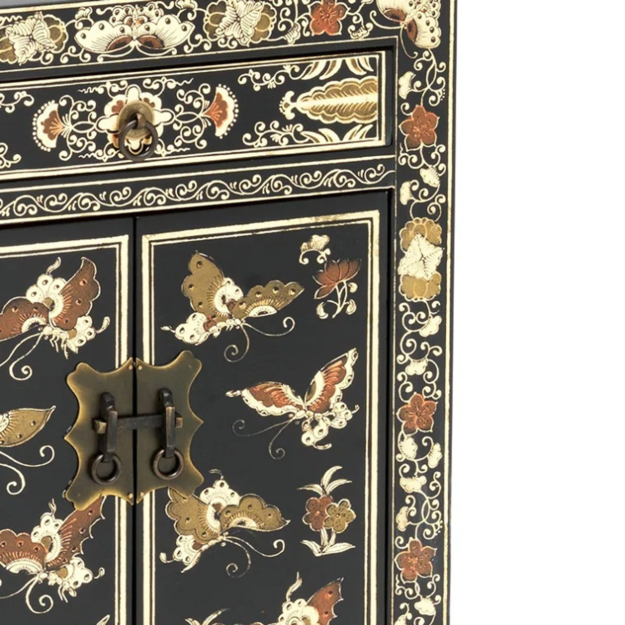 Bring timeless elegance into your home with the Chinese Style Chinese Lacquer Butterfly Lacquer Storage Cabinet Classic Black, beautifully finished with authentic Chinese-style detailing.