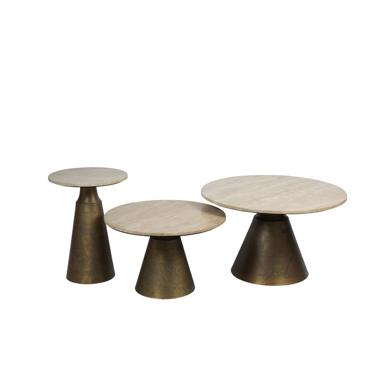 Clifton II Antique Brass & Light Travertine Coffee Table – 75cm brings style and practicality to your home.