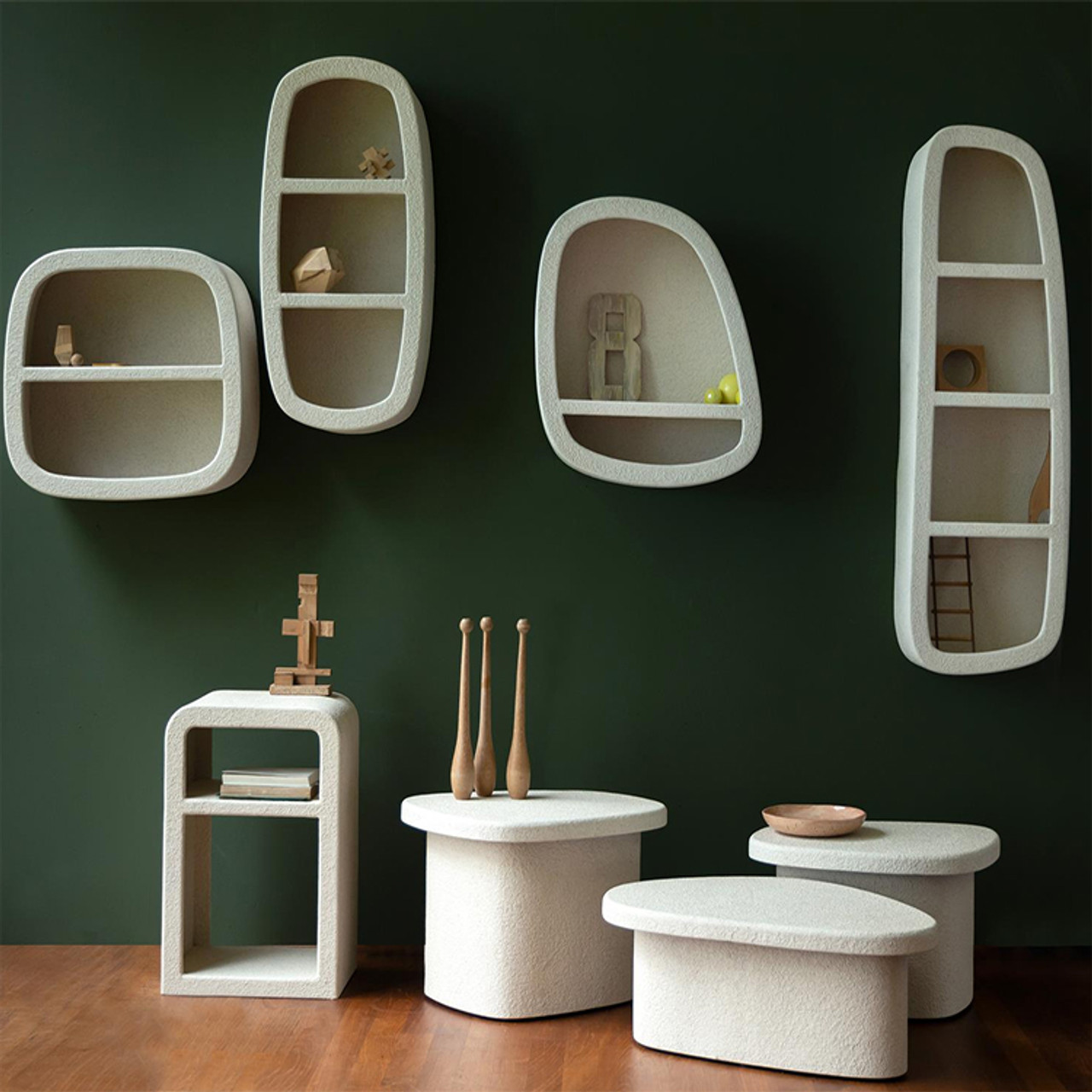 If you dream of an interior full of unique finds, you're in the right place with the Dutchbone Veda. The wall cabinets and tables in this series add instant character and atmosphere with their striking appearance. This comes from the combination of the playful, organic shapes and the warm appearance of the recycled marble they are made of. The soft beige colour also gives them a warm look. This instantly transforms the room into a cosy place where you can feel at home and warm your soul.