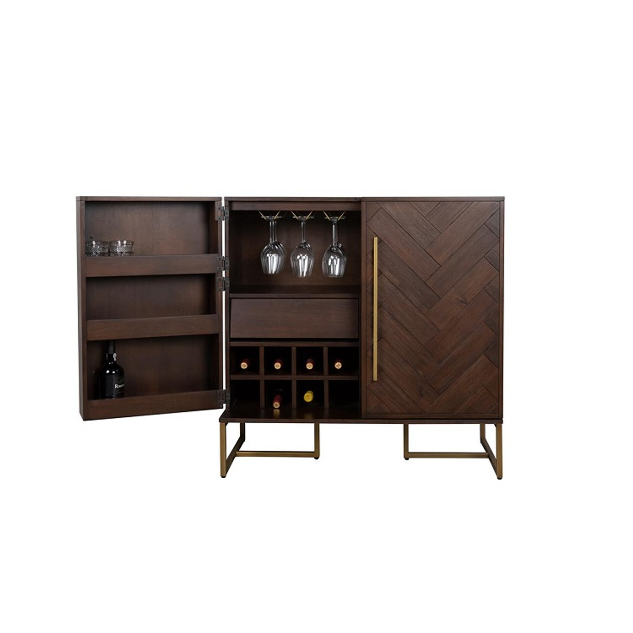Dark Acacia wood wine drinks cabinet with lovely herringbone pattern. With Dutchbones furniture, you turn every home into a cosy space – a place to warm your soul. They have create that warm atmosphere through well thought-out products brimming with character. Our designs are inspired on bygone days of the 50s, 60s & 70s. Nothing is perfect: the trick is to see perfection in imperfection. Every scratch, stain & ring mark tells a story. Often handcrafted, with slight imperfections to lend a touch of authenticity. Dutchbones products are designed to last for years and become an integral part of your story.