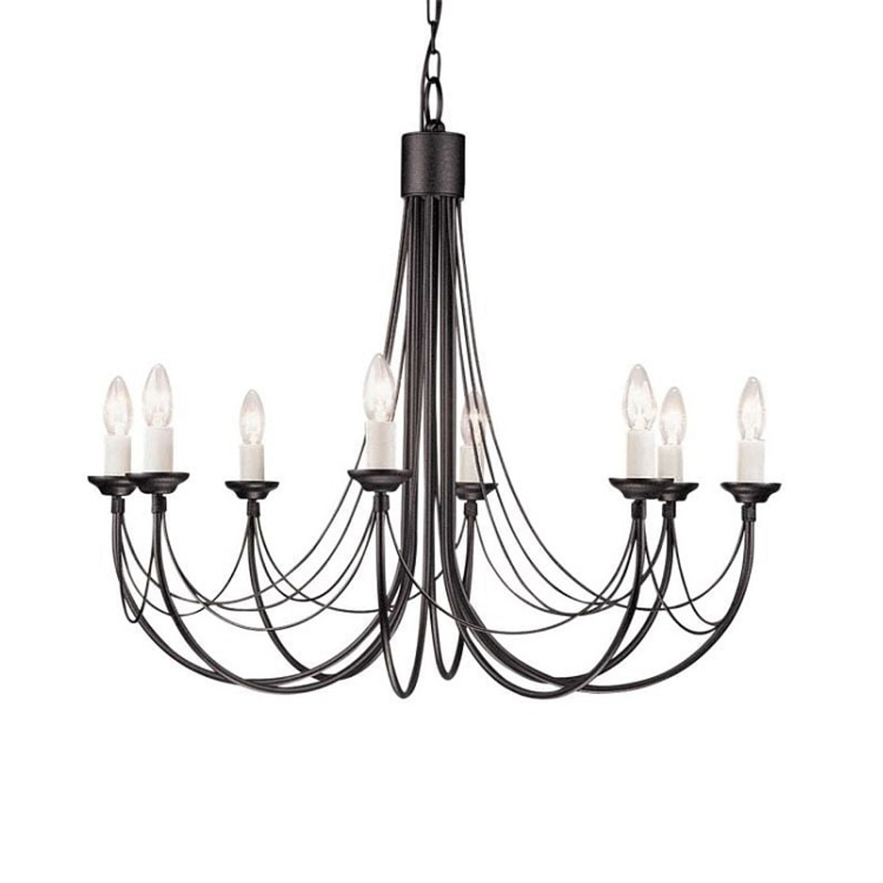 - Eight arm Gothic style chandelier with black painted finish