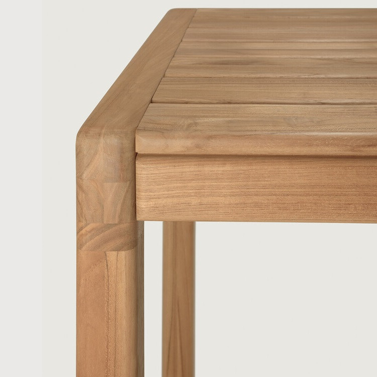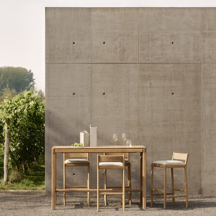 Elevate your outdoor summer experience with the Ethnicraft Jack Teak Outdoor Bar Table, combining timeless craftsmanship with nature-inspired design.