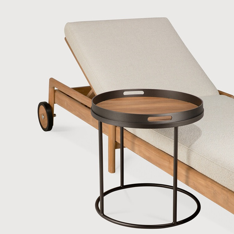Outdoor tray tables extend versatility into open-air settings. Serving as side or coffee tables, their tops are designed to accommodate our range of indoor or outdoor trays, allowing you to combine functionality with personal expression. Used individually or as a set, they provide adaptable surfaces that enhance outdoor lounging and dining areas.