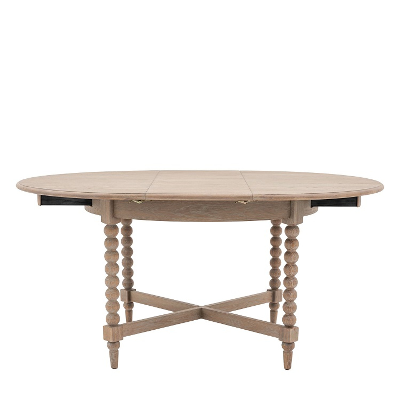 Gallery Direct Artisan Natural Oak Round Ext Dining Table 1200/1600x1200x750m blends enduring design with everyday practicality from Gallery Direct.