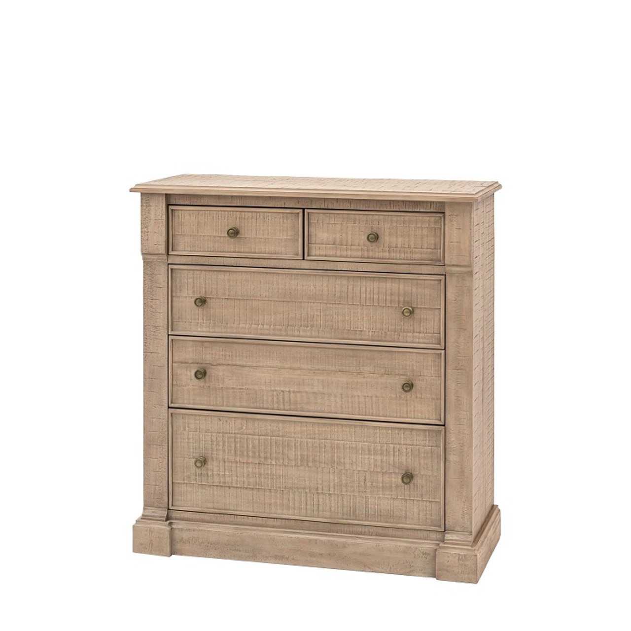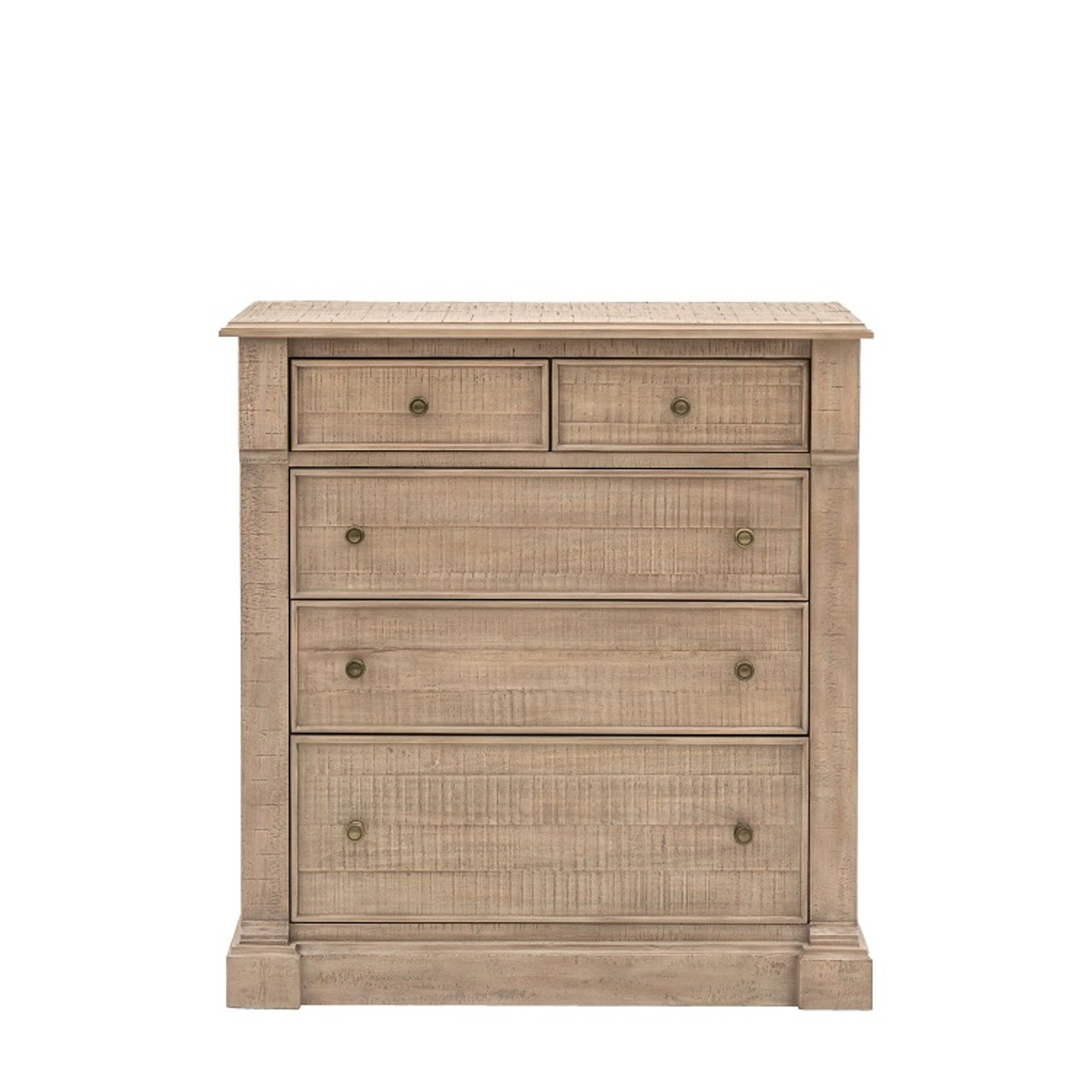 Gallery Direct Vancouver Natural Oak 5 Drawer 5 Drawer Chest 1070x475x1130 blends enduring design with everyday practicality from Gallery Direct.