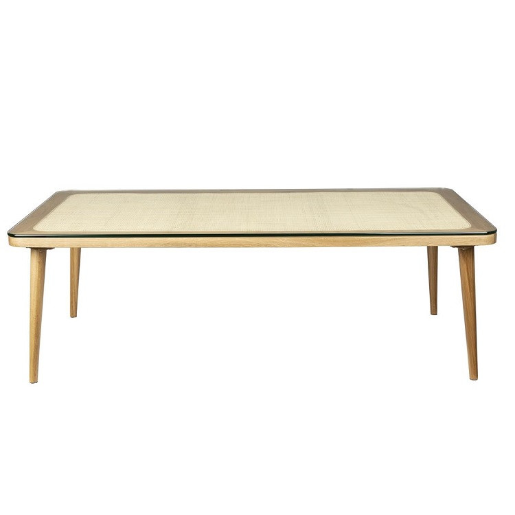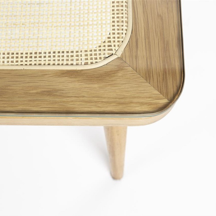 combination of oak, natural rattan & tempered glass, creates a harmonious blend