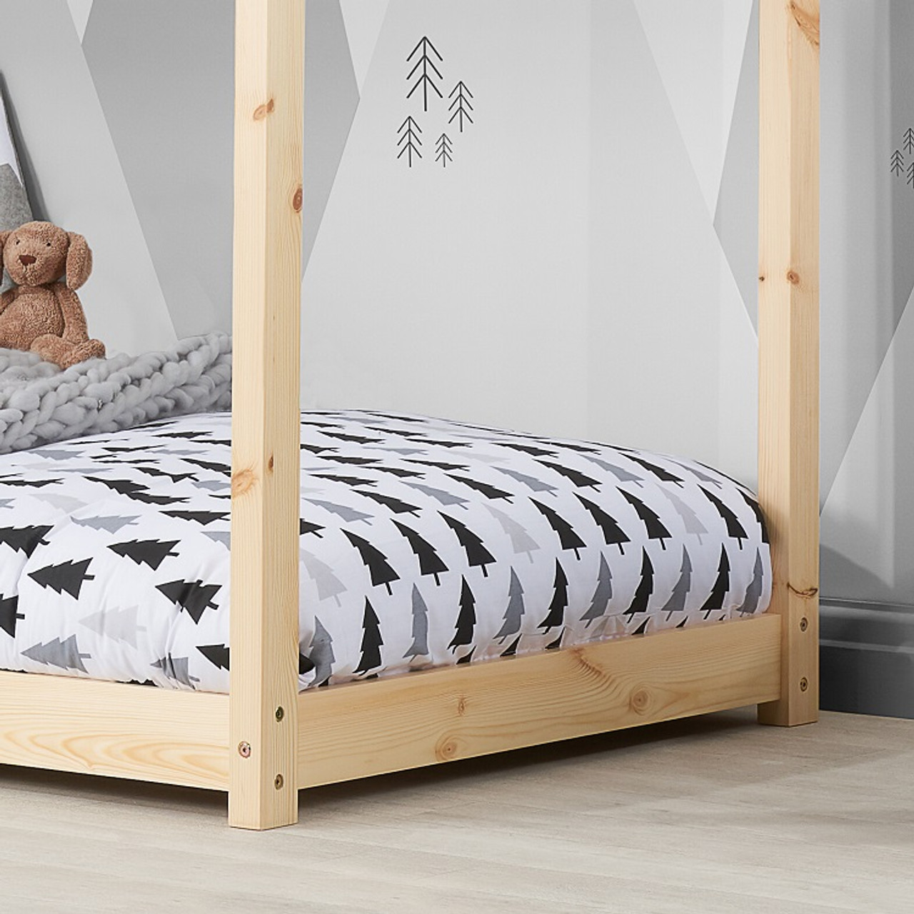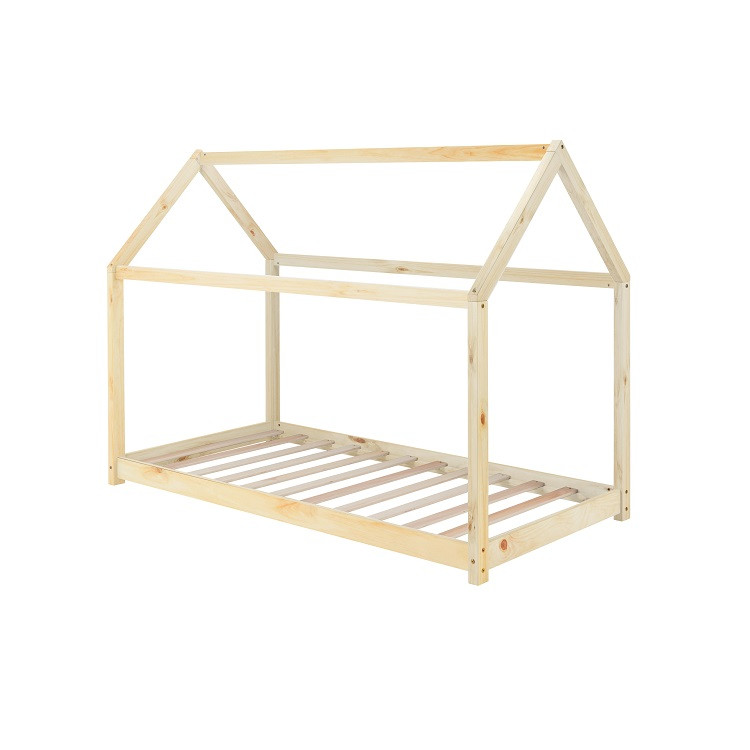House Single Bed in Pine — It's time for your kid's independence with their very own house (bed). The wooden bed frame in the shape of a house is the perfect bed for your little one's bedroom. This frame has a solid slatted base for firmer support, allowing air to circulate beneath the mattress. The maximum weight load for this bed is 100 kg. Please note: Birlea beds are only suitable for a UK standard size mattress.