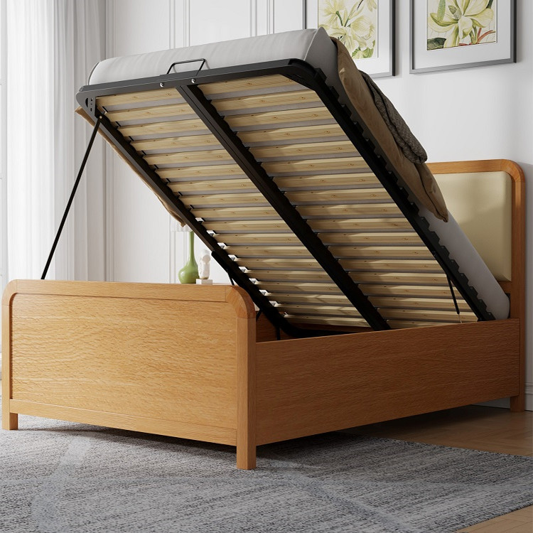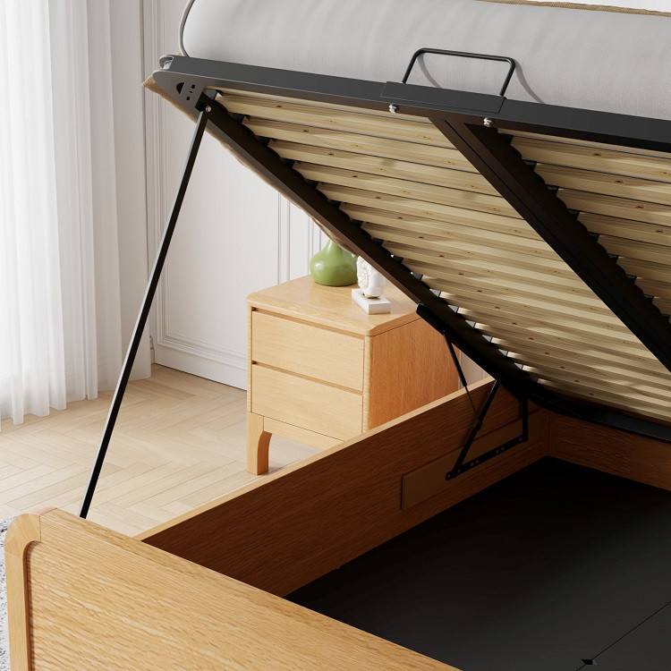 Beautifully crafted using solid and veneered oak in an oiled finish. Featuring a rounded edge headend with stylish fabric headboard pad, high rounded edge footend to compliment the headend. Unrestricted deep floating floor ottoman storage area, an easy to assemble mattress base with pre-installed slats & fitted with an Ottoman Safety Bar.