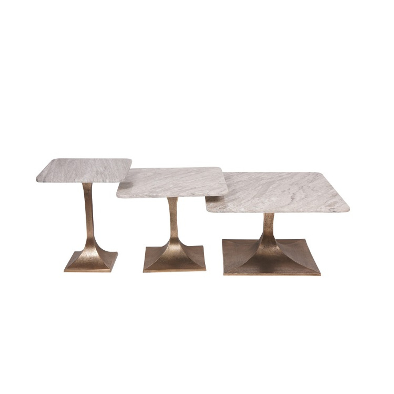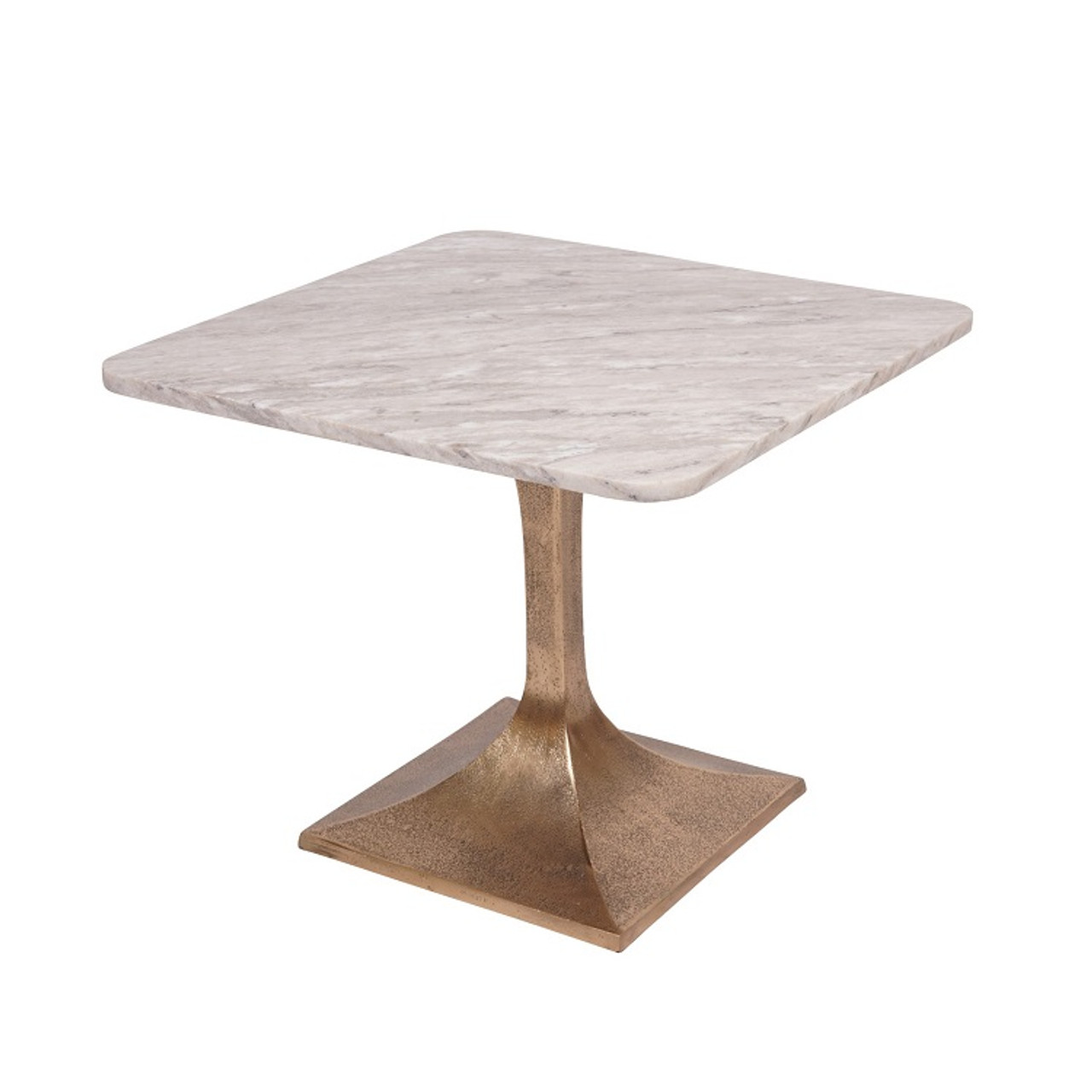 Libra Morchino Marble Side Table 55cm – Square Top, Antique Brass Base — a statement square side table with Morchino marble top and antique brass pedestal base.
