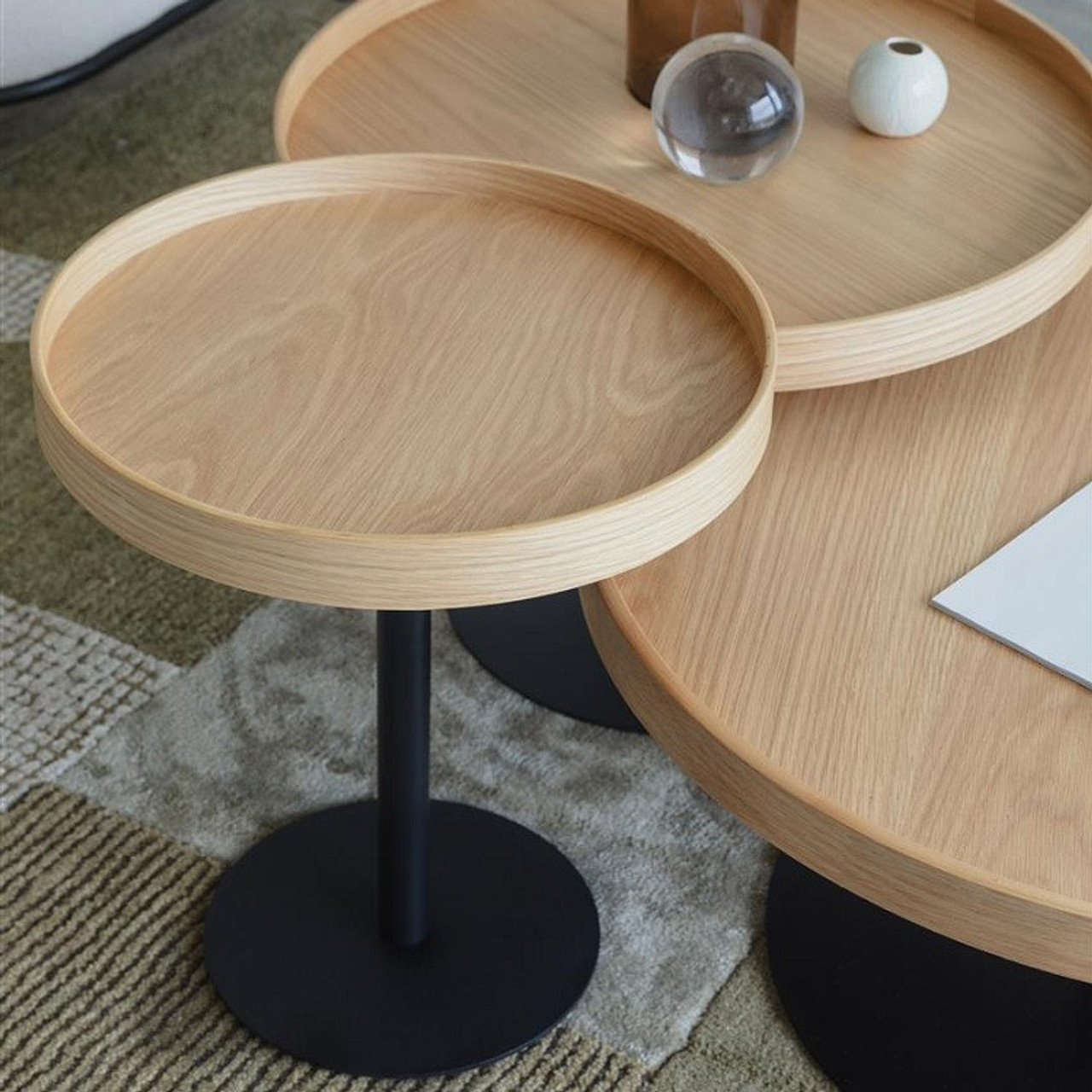 The light Oak & black coloured iron base combination adds a contemporary touch, making it a versatile piece that can integrate seamlessly into any interior. Its practical deep lipped sides provides the perfect space for every day use or even a centerpiece. The Visp collection comes in several sizes & works well when paired together.