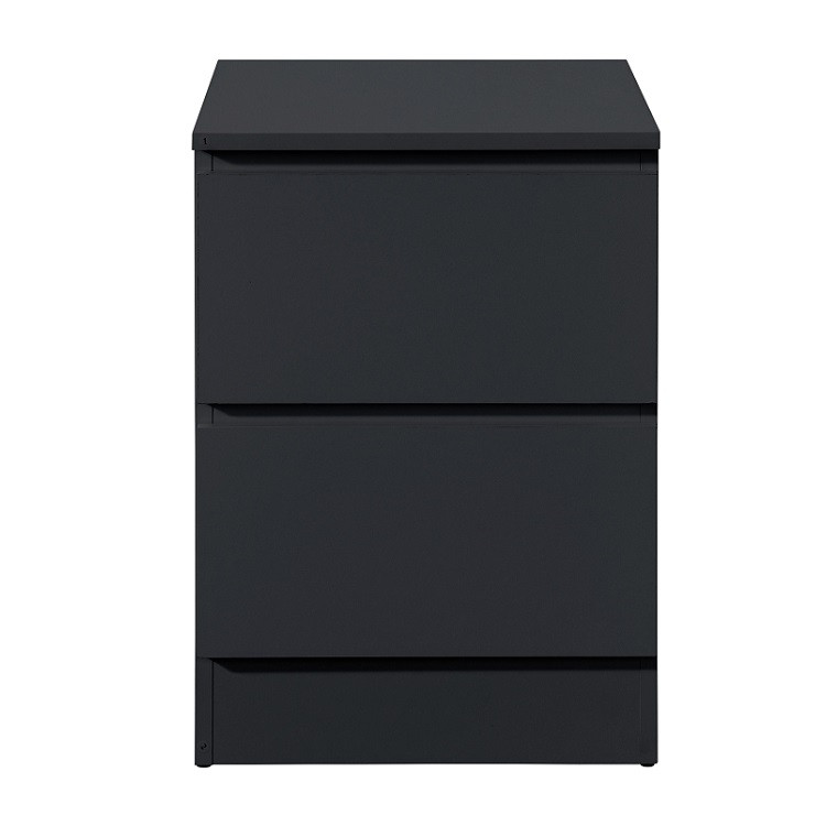 Oslo 2 Drawer Bedside in Black — Modern & sleek the Oslo range is bedroom furniture with a streamlined design. It's simple design and minimal grooved handles has a sleek finish that pairs perfectly with any contemporary décor. Care instructions: Wipe carefully with a soft, dry cloth.
