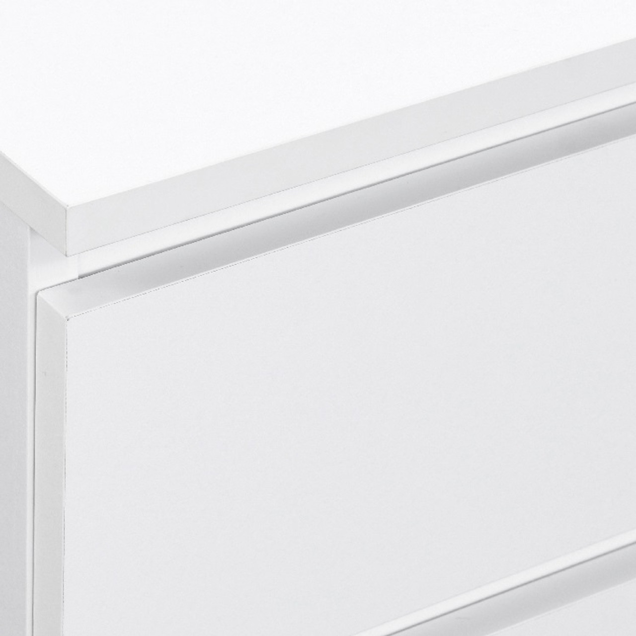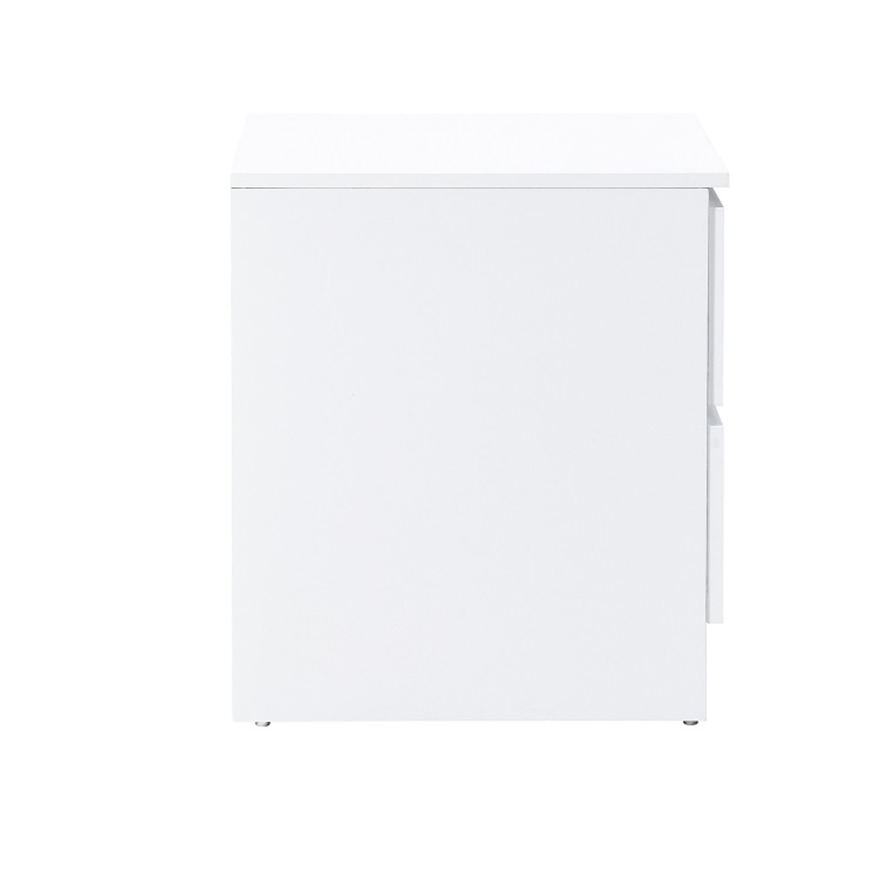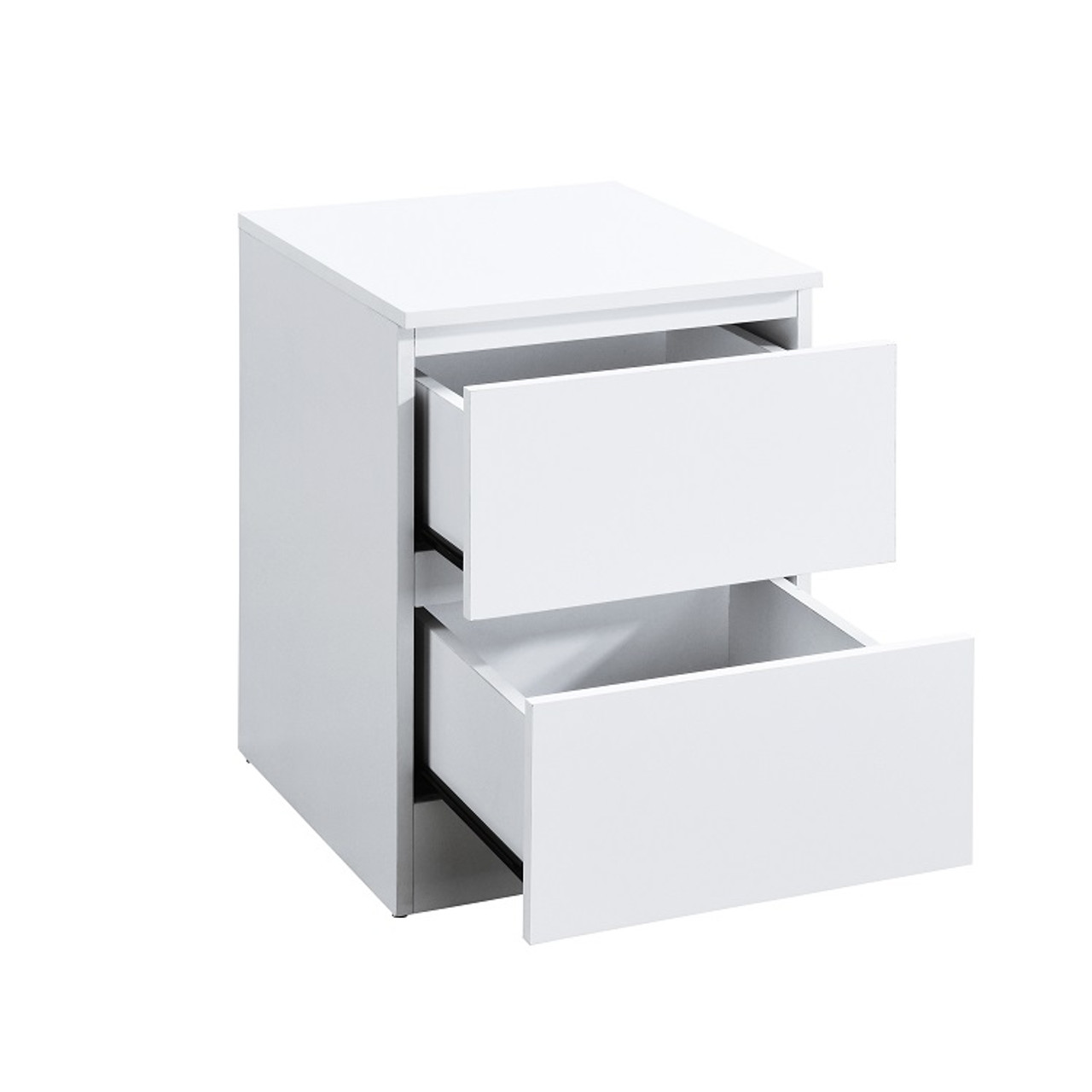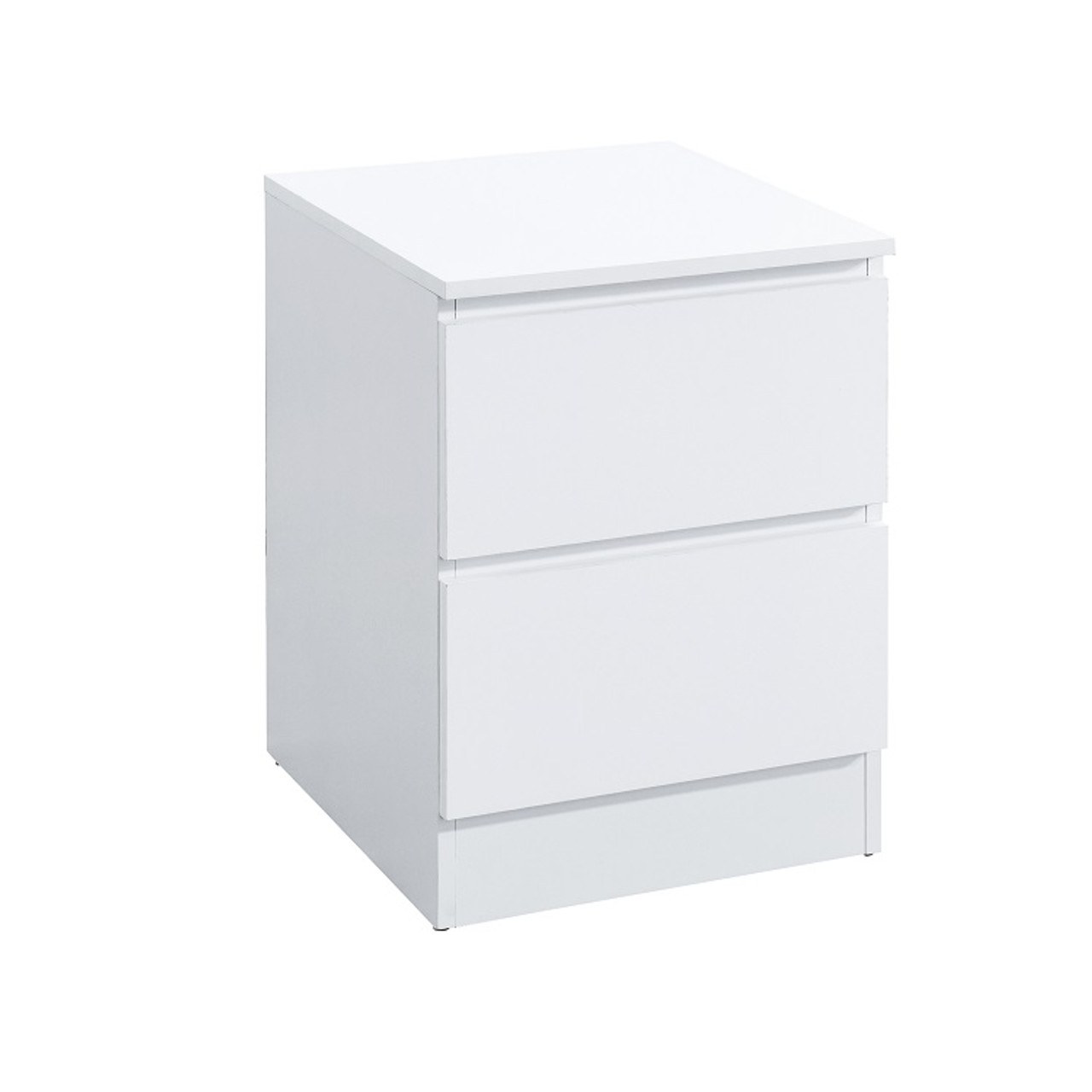 Oslo 2 Drawer Bedside in White — Modern & sleek the Oslo range is bedroom furniture with a streamlined design. It's simple design and minimal grooved handles has a sleek finish that pairs perfectly with any contemporary décor. Care instructions: Wipe carefully with a soft, dry cloth.