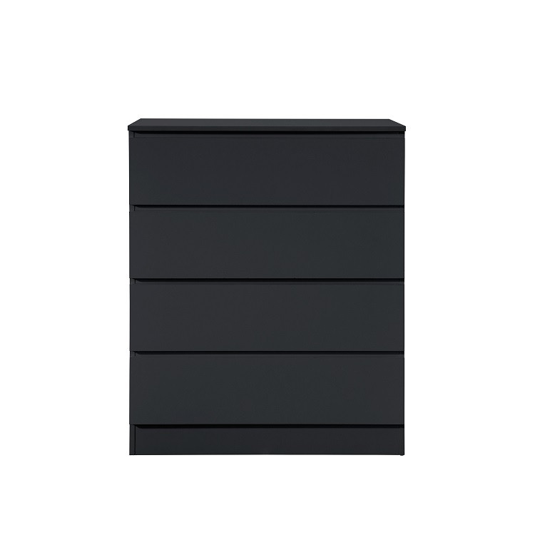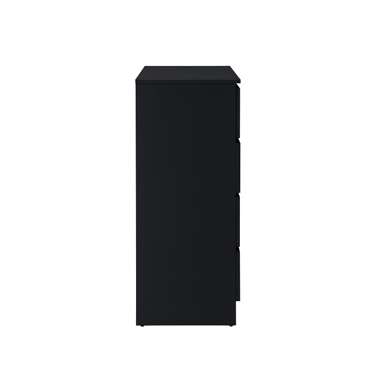 Oslo 4 Drawer Chest in Black — Modern & sleek the Oslo range is bedroom furniture with a streamlined design. It's simple design and minimal grooved handles has a sleek finish that pairs perfectly with any contemporary décor. The Oslo 4 Drawer Chest is designed with four spacious drawers and is ideal for storing away any belongings. Care instructions: Wipe carefully with a soft, dry cloth.