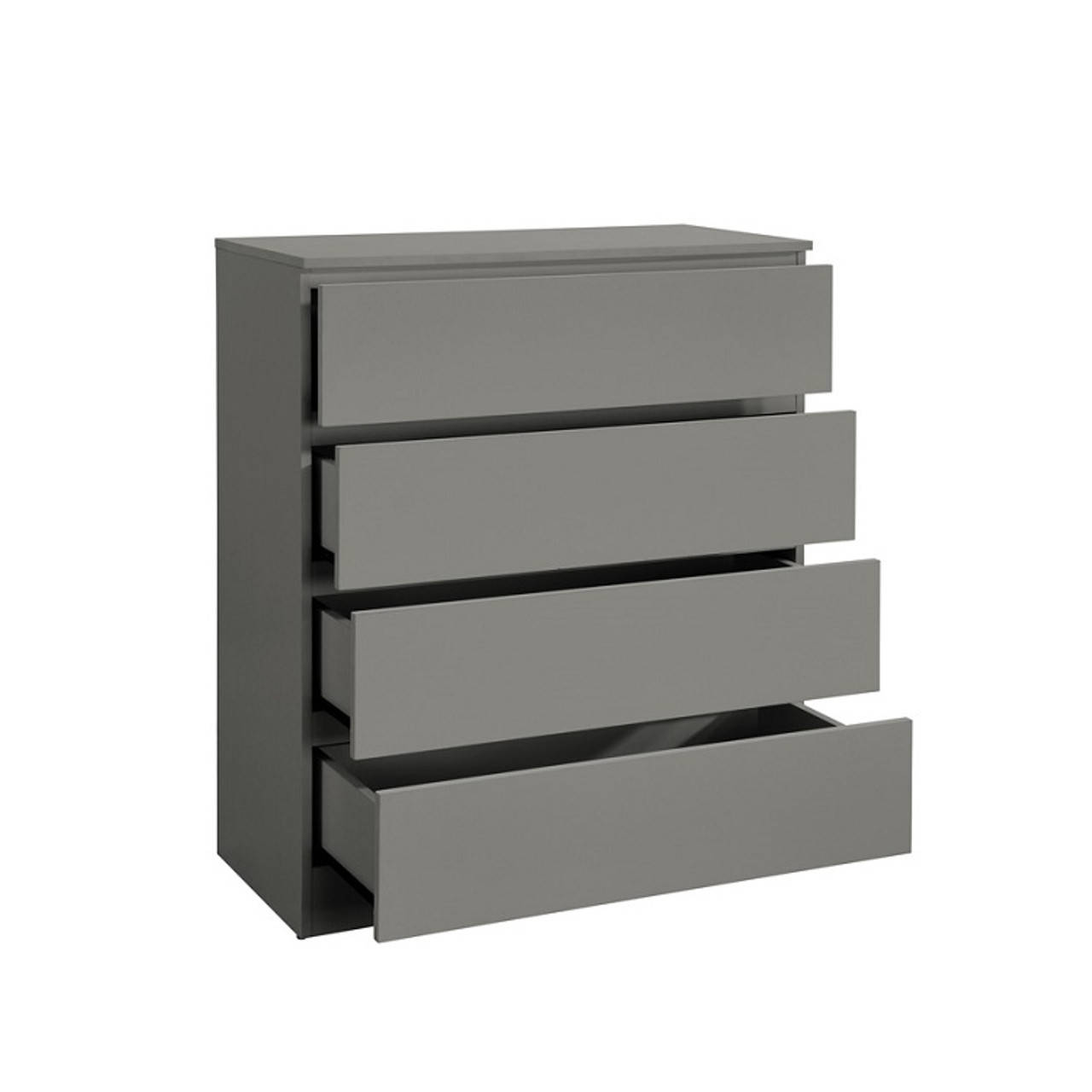 Oslo 4 Drawer Chest in Grey — Modern & sleek the Oslo range is bedroom furniture with a streamlined design. It's simple design and minimal grooved handles has a sleek finish that pairs perfectly with any contemporary décor. The Oslo 4 Drawer Chest is designed with four spacious drawers and is ideal for storing away any belongings. Care instructions: Wipe carefully with a soft, dry cloth.
