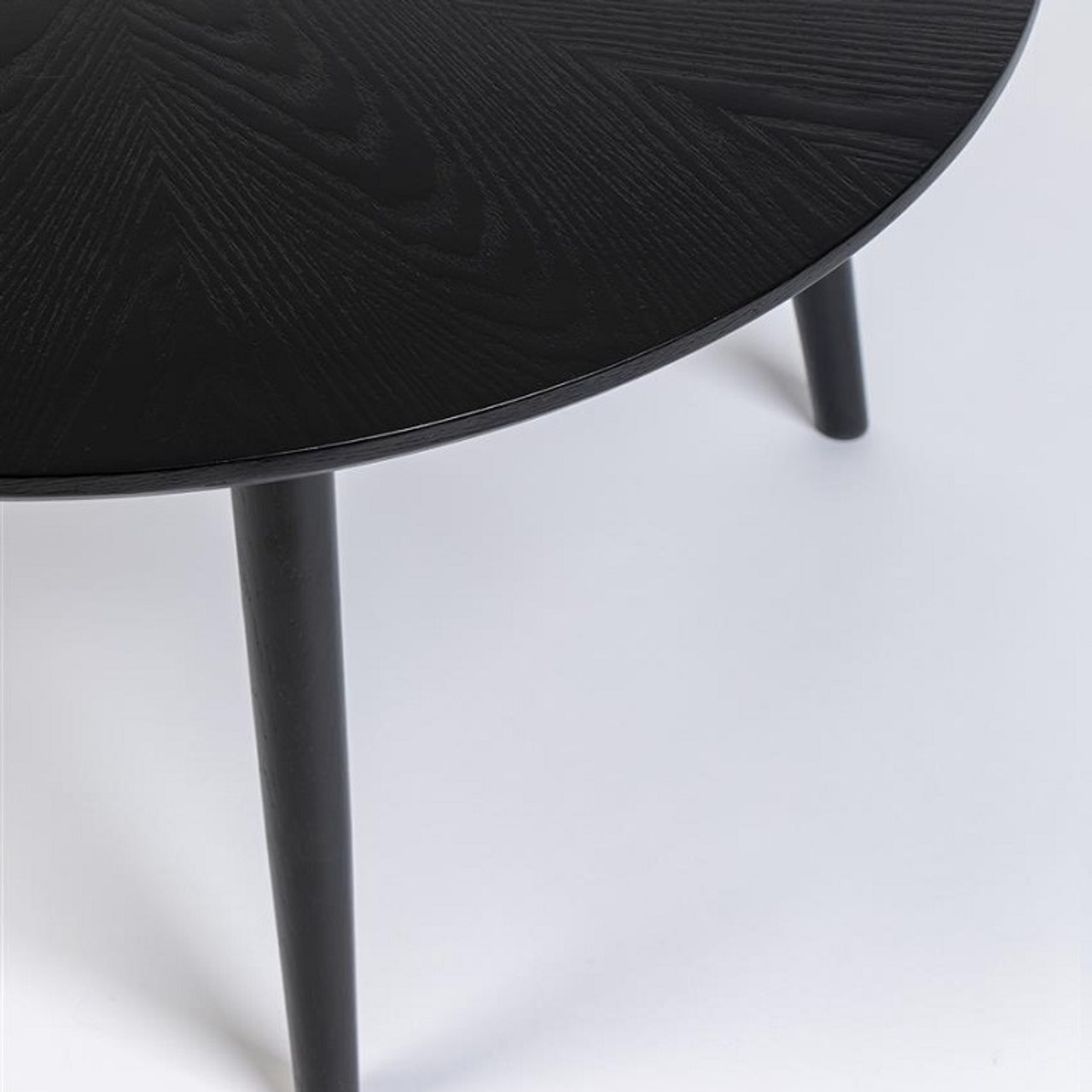 The round black dining table from the Basel collection brings class, texture, and timeless style to your dining space. With its beautifully detailed star-patterned oak veneer top, this 120 cm table comfortably seats up to four to six diners. The black oak finish highlights the wood grain, creating a welcoming focal point for both contemporary and Scandinavian-inspired interiors. A perfect blend of craftsmanship and modern simplicity.