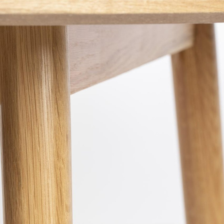 The round oak dining table from the Basel collection brings warmth, texture, and timeless style to your dining space. With its beautifully detailed star-patterned oak veneer top, this 120 cm table comfortably seats up to four to six diners. The natural oak finish highlights the wood grain, creating a welcoming focal point for both contemporary and Scandinavian-inspired interiors. A perfect blend of craftsmanship and modern simplicity.