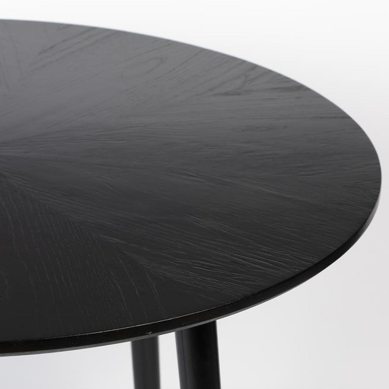 This round black dining table from the Basel collection makes an elegant statement in any dining room. The stunning star-patterned tabletop showcases the beauty of black Oak wood veneer, bringing warmth and sophistication to your space. Designed for four diners, its balanced proportions and timeless shape make it ideal for both everyday use and intimate gatherings. A refined piece that pairs beautifully with other items in the Fabio range.