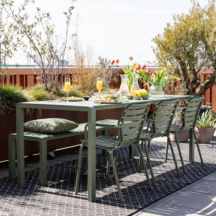 Sun’s out? Yes? Let’s enjoy it while sitting on the Vondel garden set. This hip and happening outdoor set is designed in collaboration with designers from Studio APE. And boy did we do a good job, or what? This series has many options. Think benches, different chairs, and different tables!