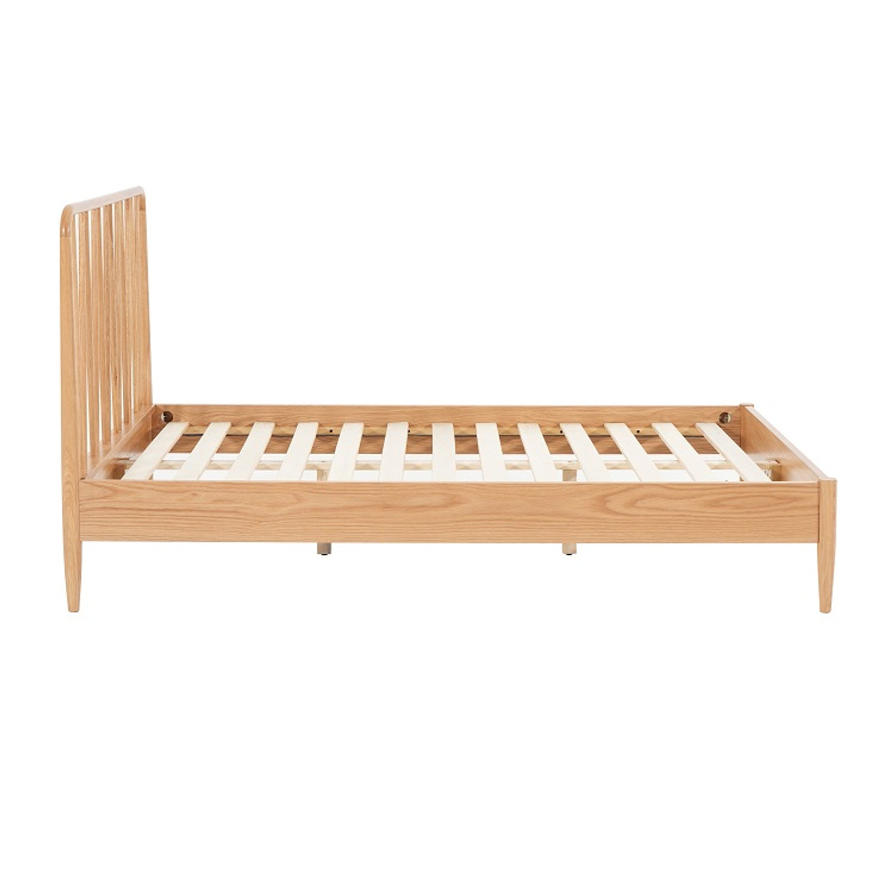 Jesper Bed in Oak — A real statement piece, the Jesper bed has a beautifully crafted spindled headboard giving it a real distinctive character. Crafted from oak the Jesper bed features a classic construction and will look fantastic in both traditional and contemporary bedroom interiors. This frame has solid slats ideal for a firmer mattress. Please note: Birlea beds are only suitable for a UK standard size mattress.