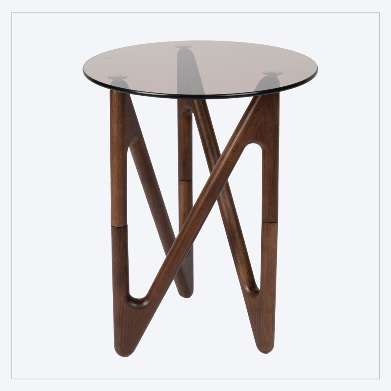 If you're looking for a special piece of furniture to add character to your seating area, you’re in the right place with the Dutchbone Naia. The coffee or side table is inspired by the wavy movement of the sea reflected in the organic shapes of the base. The oak wood with a natural or walnut finish also gives off a lot of warmth. Together with the round, smoked glass top, this creates an atmospheric and slightly retro look seen in a seventies interior. Perfect for creating an intimate setting to gather with friends or family - a place to warm your soul.