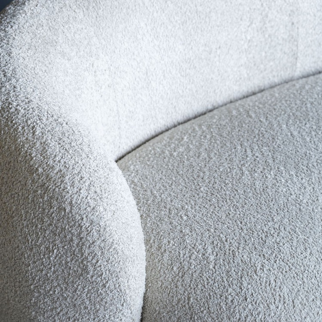 - Upholstered in soft cream bouclé